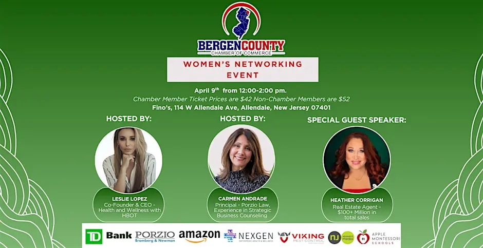 Join the Bergen County Chamber of Commerce for a vibrant Women’s Networking Lunch on Wednesday, September 17 at The Brick House, 179 Godwin Avenue, Wyckoff, NJ—an empowering hour of connection,...